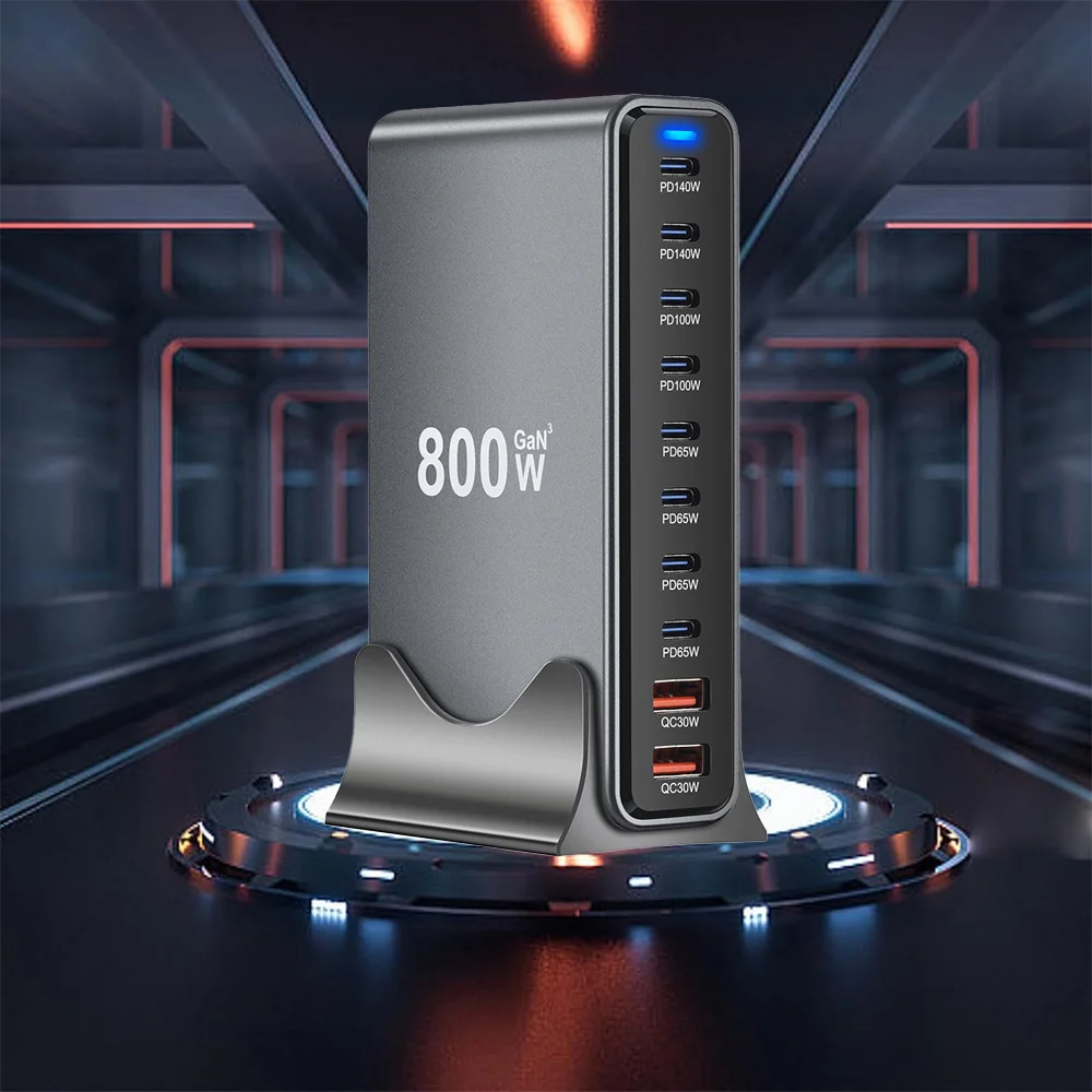 800W Gan 10 Ports Fast Charging Station Adapters USB C PD3.1 Desktop Charger