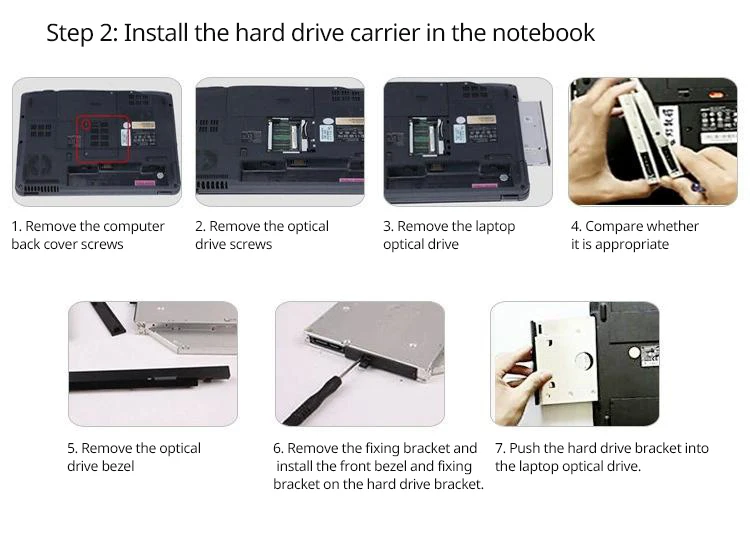 The 2nd Hard Disk Drive Caddy / Adapter to bring you new maximum data storage flexibility. With the second HDD in your Laptop, you can speed to backup important applications and critical data. Simply remove your CD-ROM drive and put the Caddy (with the added hard drive) in its place.