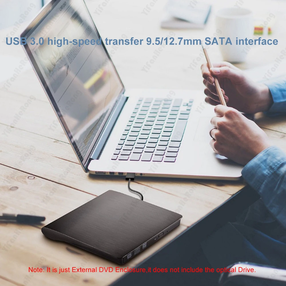 External DVD CD-ROM Drive Enclosure 12.7/9.5Mm USB 3.0 for Lapto Macbook”