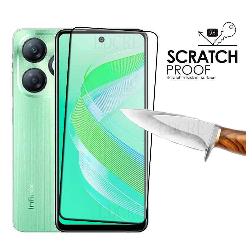 Infinix Smart 8 Glass Infinix Smart 8 Tempered Glass Protective Full Cover Glue HD 9H Screen Protector Infinix Smart 8”