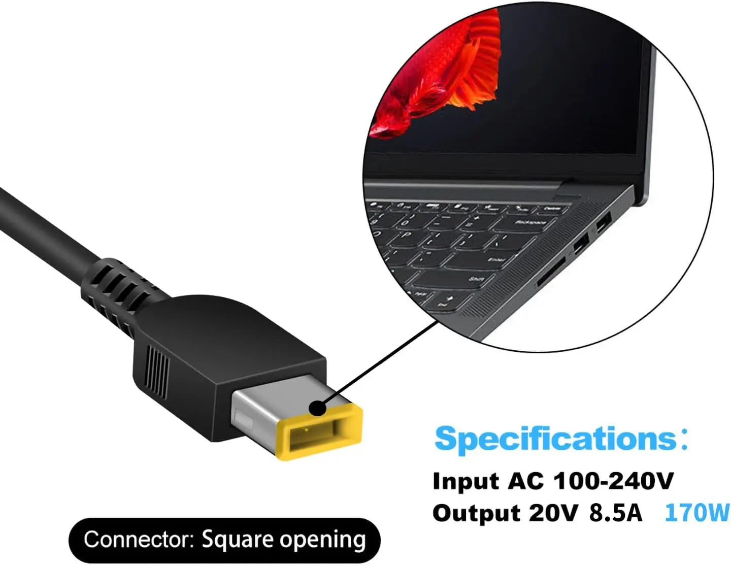 - Output: 170w slim tip 3-pin ac adapter, 100-240v, 50-60hz has an output power of 20V 8.5A 170 Watt. It is perfectly compatible with (170W) Lenovo Thinkpad p73 charger and lenovo x1 carbon power adapter 170w, lenovo thinkpad p16 charger, lenovo thinkpad charger 170w —-NOTE—- [Do not buy if your laptop requires more than 170W. — Do not buy if your laptop is a USB-C port.]