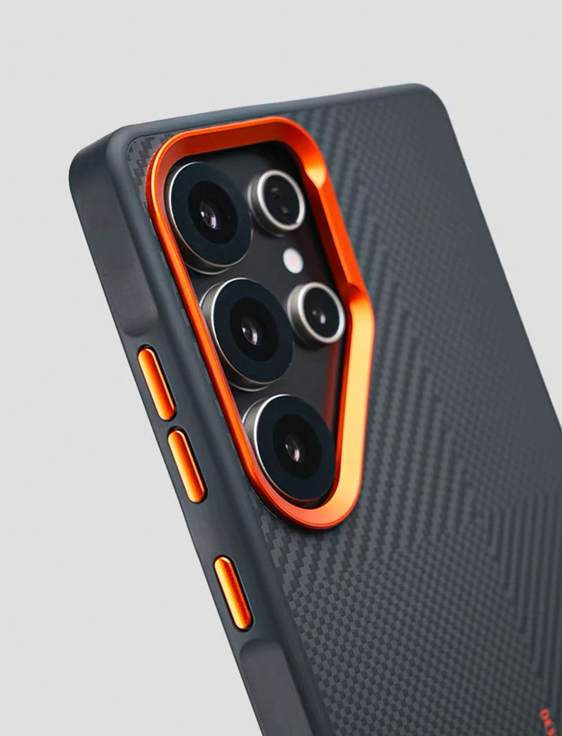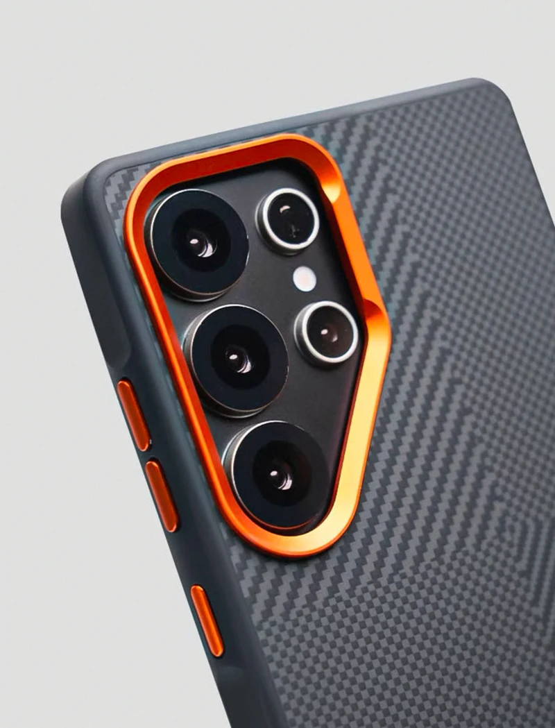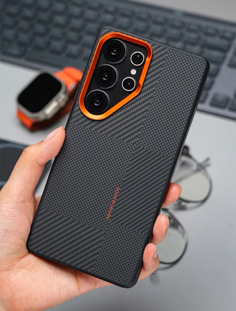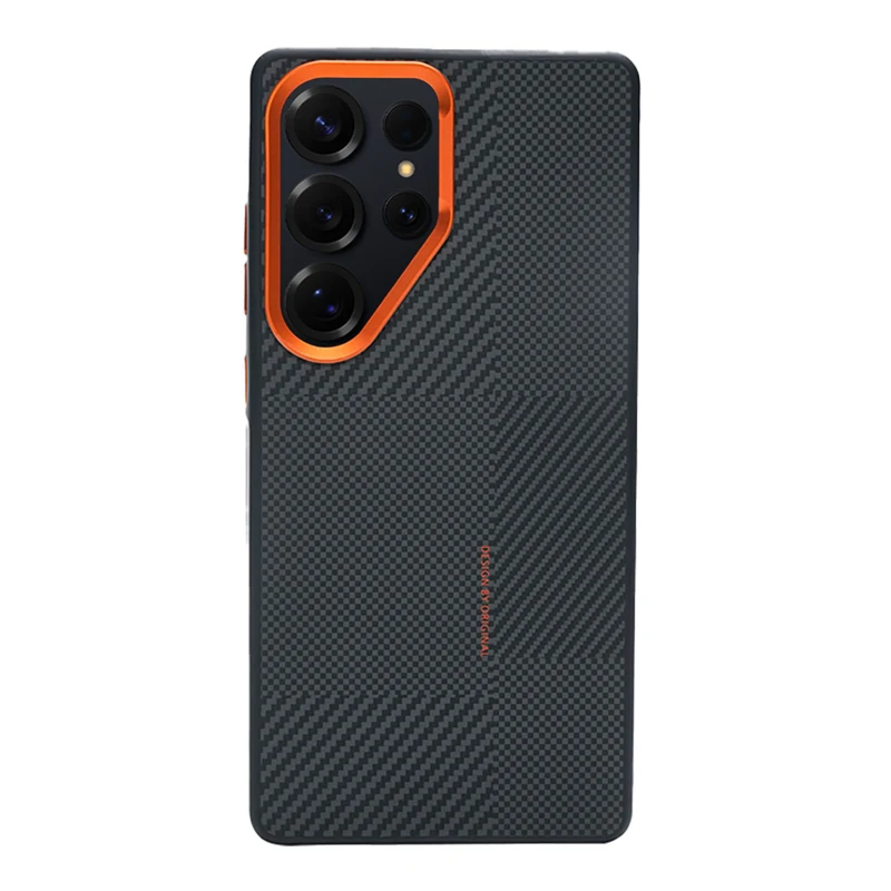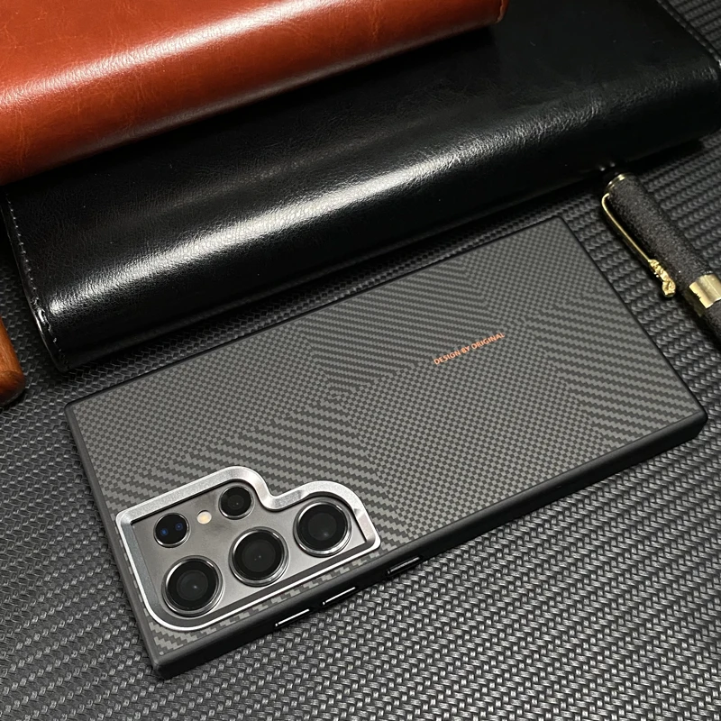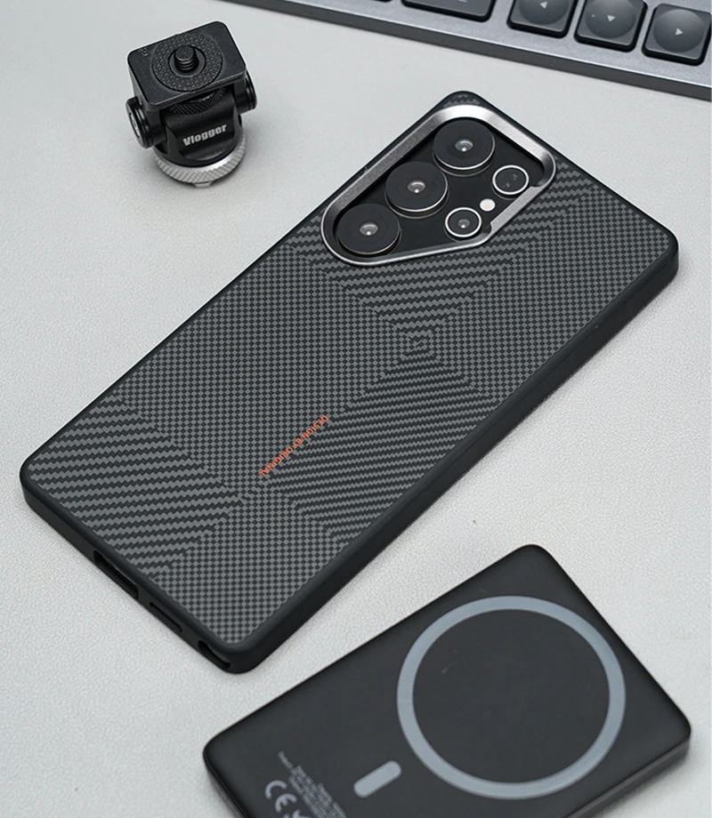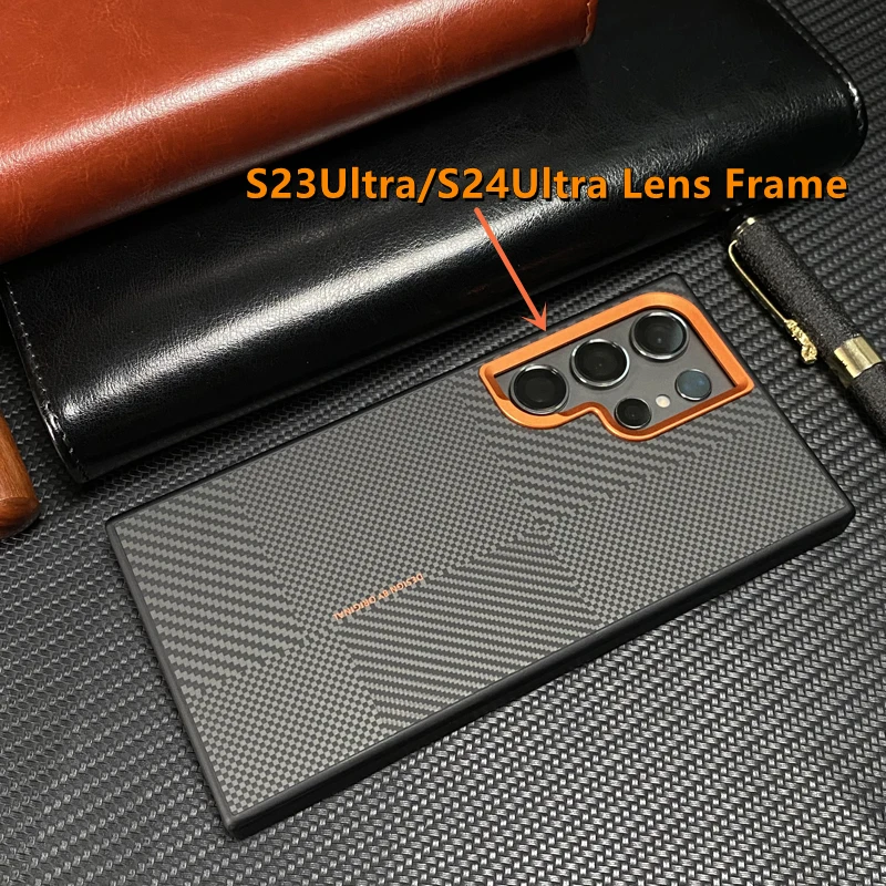 Magnetic Alloy Lens MagSafe Phone Case for Samsung Galaxy S25 Ultra S24 S23 Carbon Fibre Texture Wireless Charge Soft edge Cover