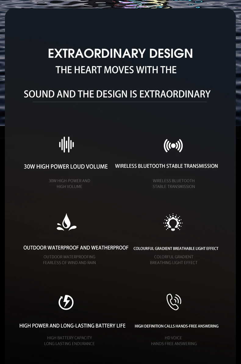 Outdoor 30W 4000mAh Portable with Hand Strap RGB Light Speaker Waterproof Wireless Bluetooth Heavy Loud Bass Audio Speaker