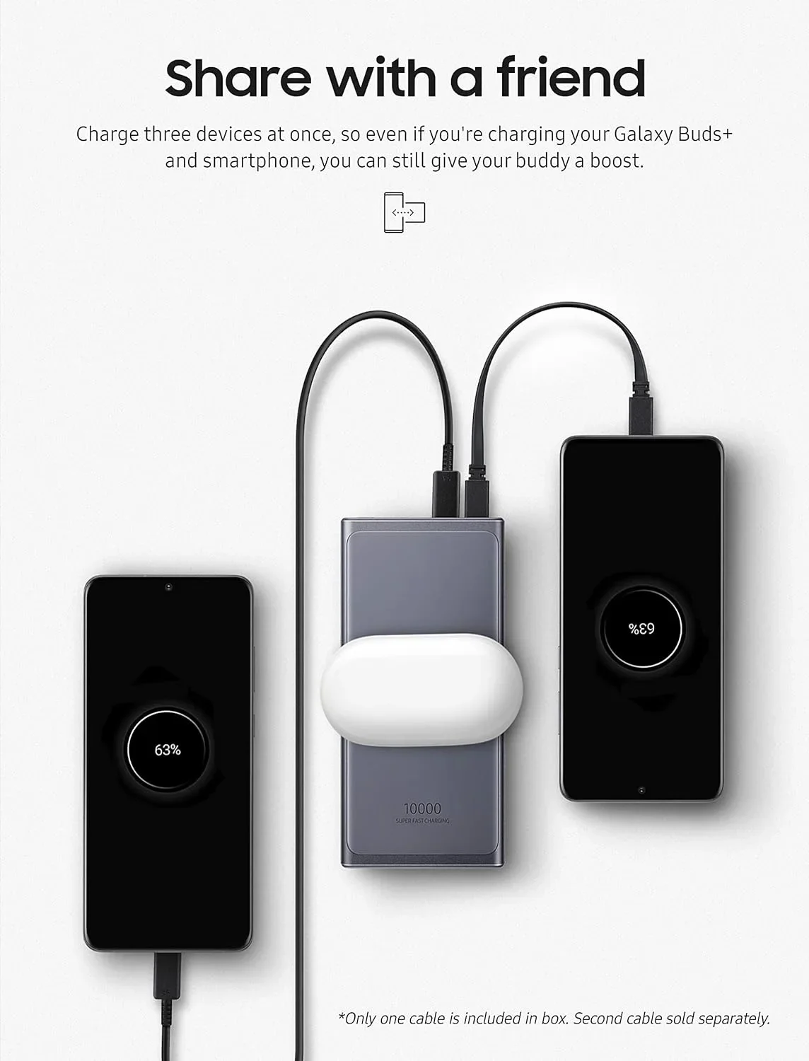 Wireless Power Bank 10000Mah Dual Type C Port Fast Charge Portble”